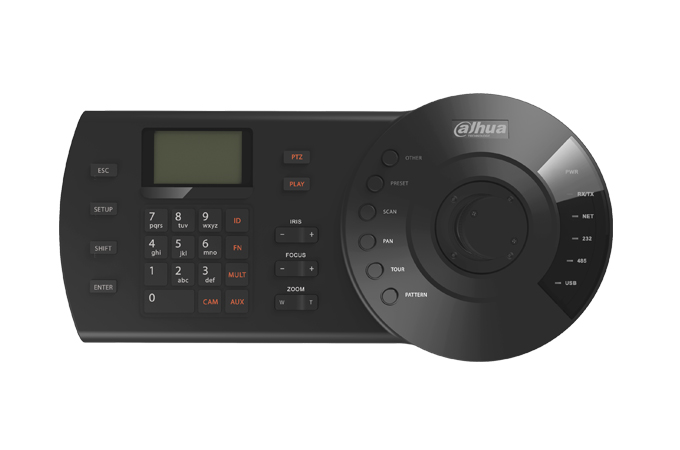 可控制多台硬盘录像机(DVR),也可以多台键盘控制一台硬盘录像机; 可控制球机; 支持RS485接口和RS232接口; 通过摇杆可方便地控制云台; 可实现硬盘录像机前面板所有能实现的功能; 具备键盘锁定功能; 具备多级操作权限; 支持级联功能; 可进行单台或多台硬盘录像机的菜单设置; 可视化菜单设计、人性化操作步骤,方便用户操作; 支持网络接口连接;可兼容多种等设备;